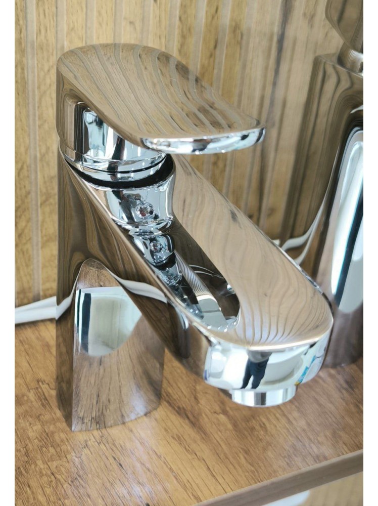 Однорычажный смеситель для умывальника с современным дизайном.