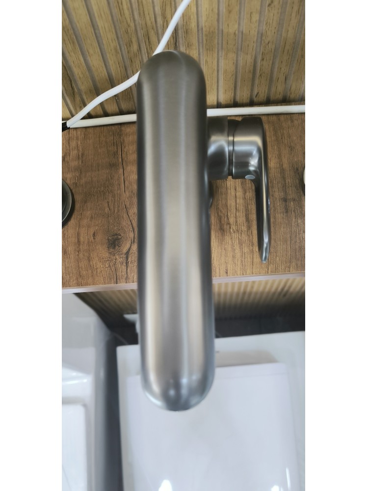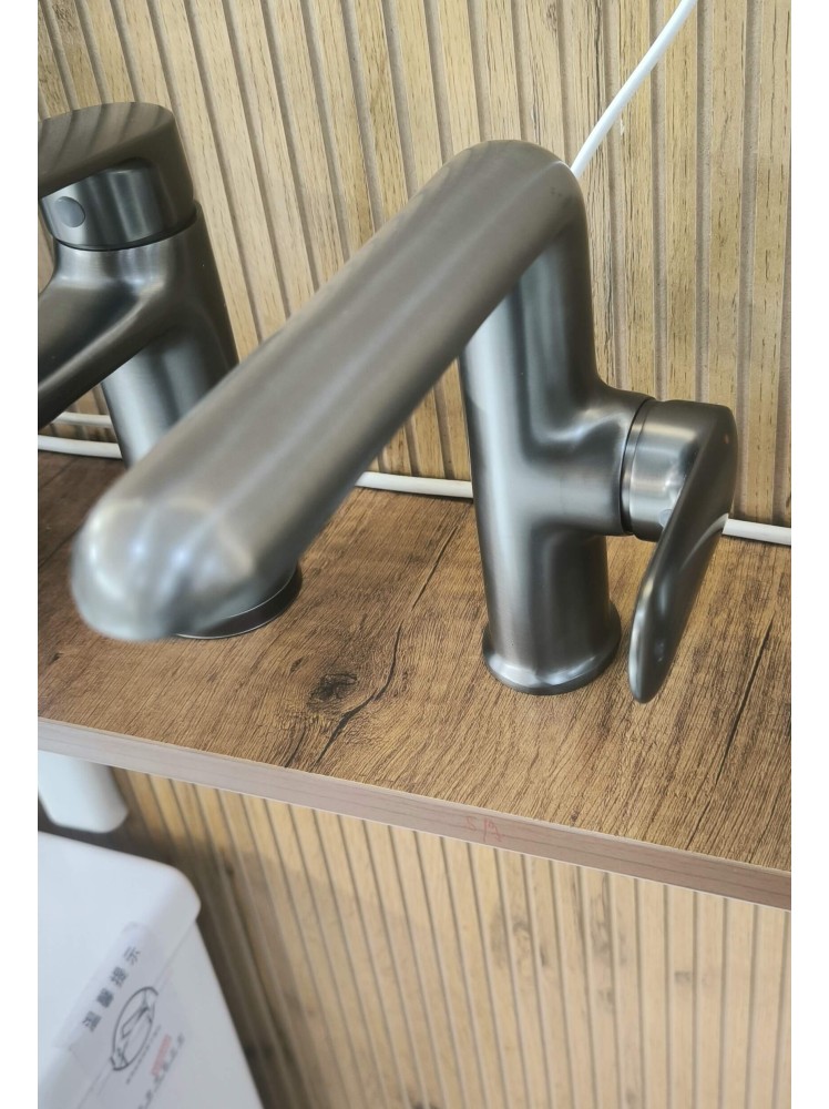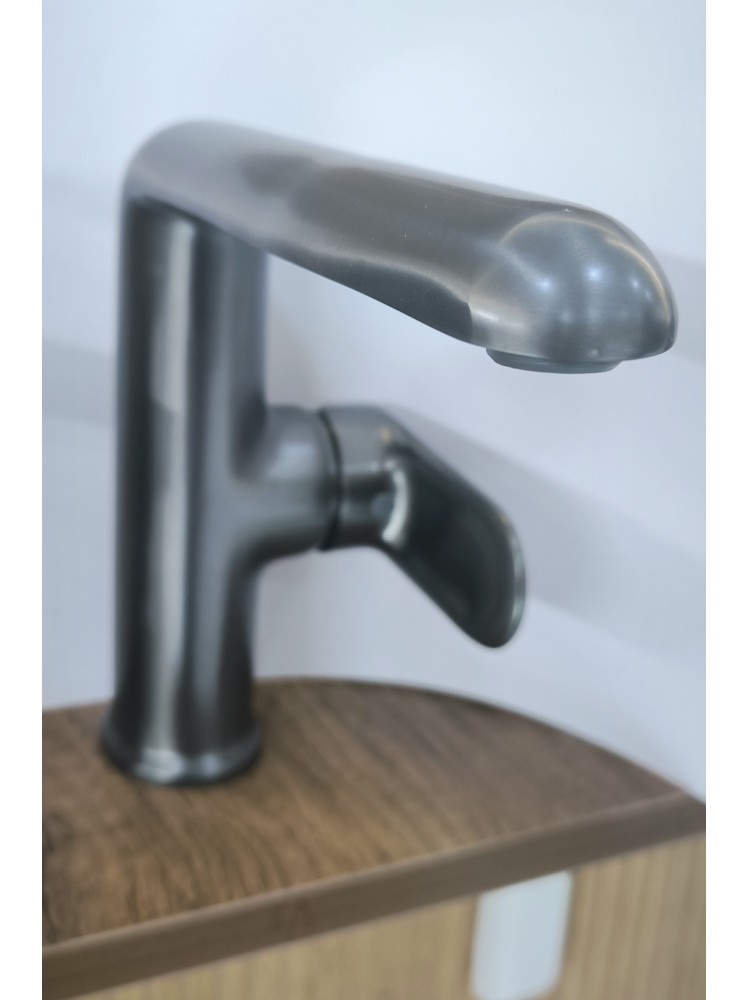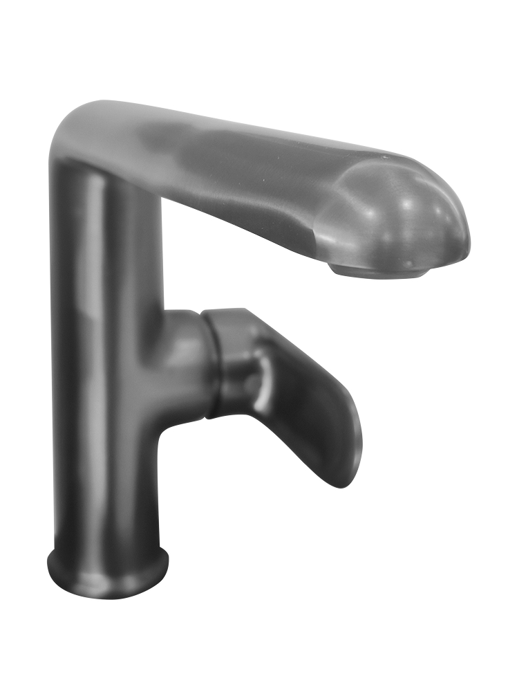 Однорычажный смеситель для раковины, цвет-оружейная сталь. Модель имеет округлый корпус и плавно закруглённый широкий излив. Плоский боковой рычаг обеспечивает удобную регулировку напора и температуры. Стильный и лаконичный дизайн гармонично впишется в современный интерьер ванной комнаты.