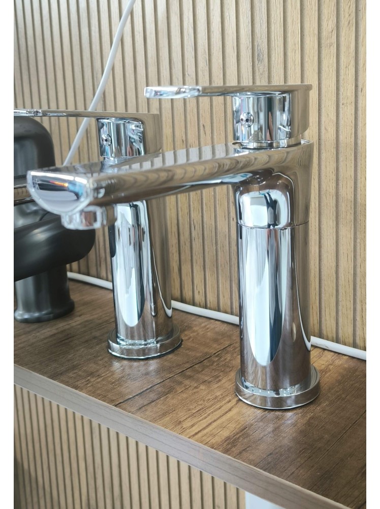 Однорычажный смеситель для умывальника с хромированным покрытием. Корпус имеет плавно закруглённую форму, а удлинённый плоский излив обеспечивает ровную подачу воды. Верхний плоский рычаг удобен для точной регулировки напора и температуры. Современный минималистичный дизайн подходит для большинства ванных комнат.