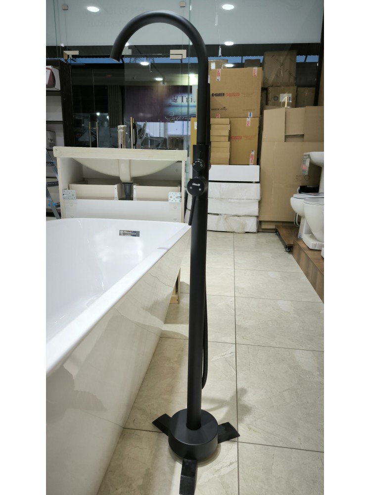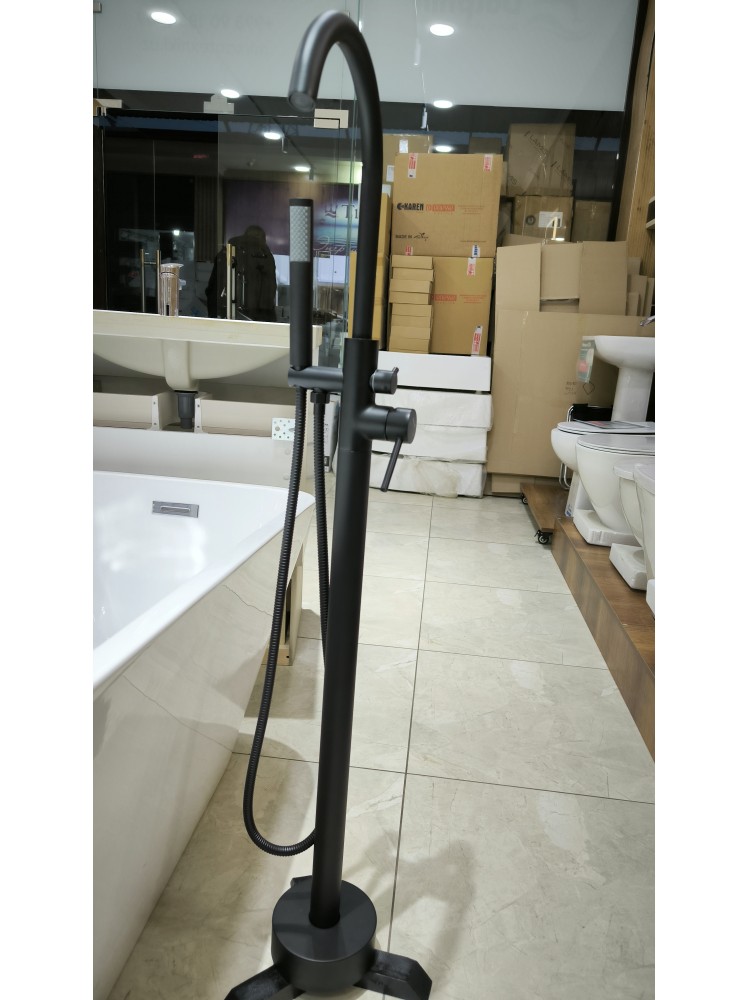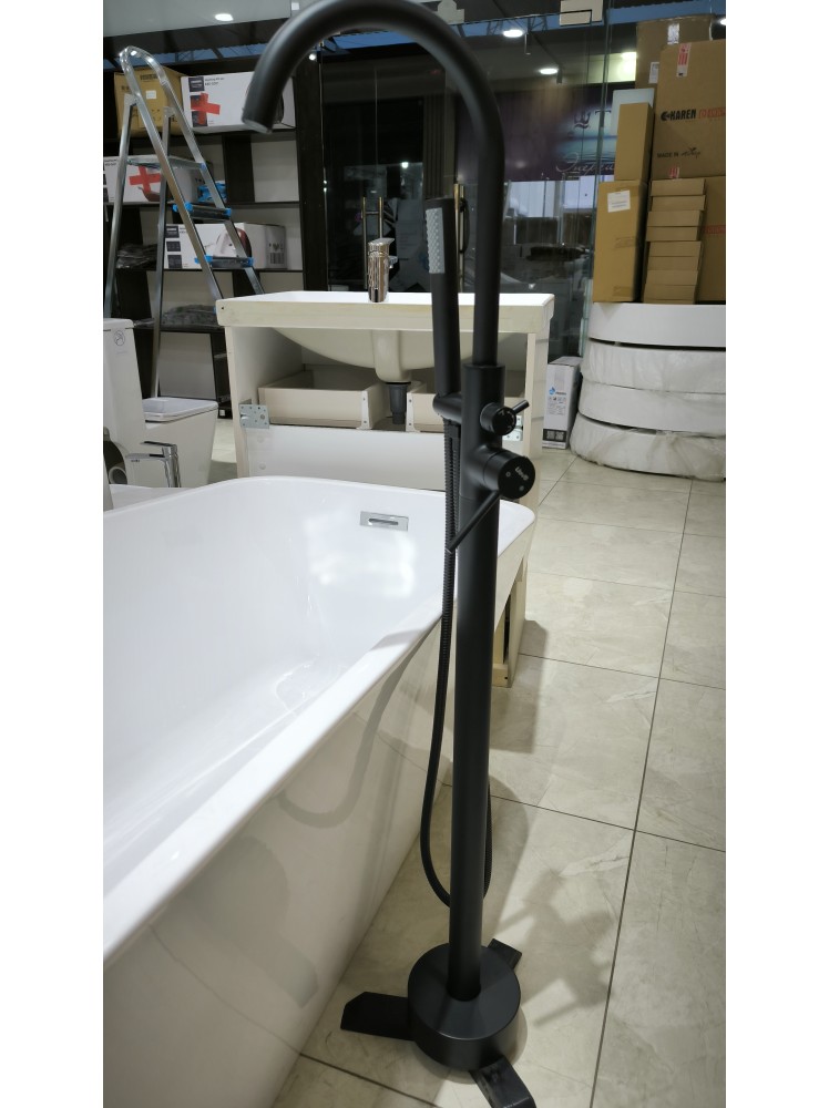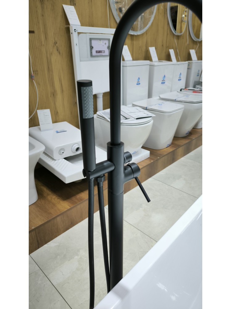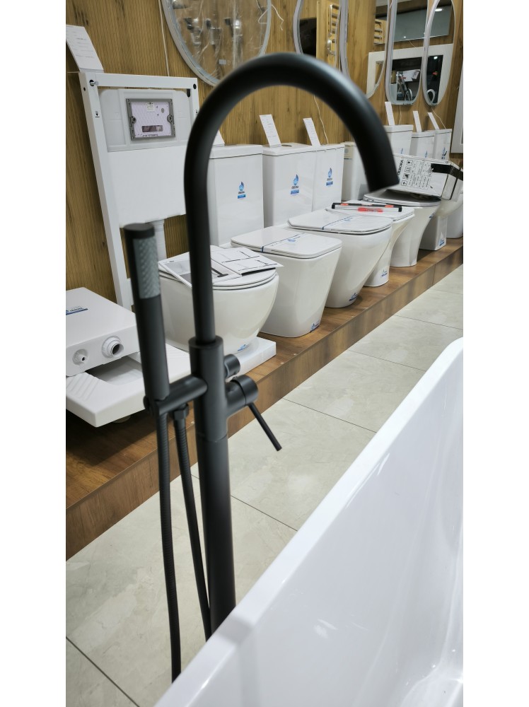Отдельностоящий смеситель для ванной — стильное и функциональное решение для современных интерьеров. Идеально подходит для установки рядом с отдельно стоящей ванной, создавая эффектный акцент в пространстве и подчеркивая премиальный характер ванной комнаты.