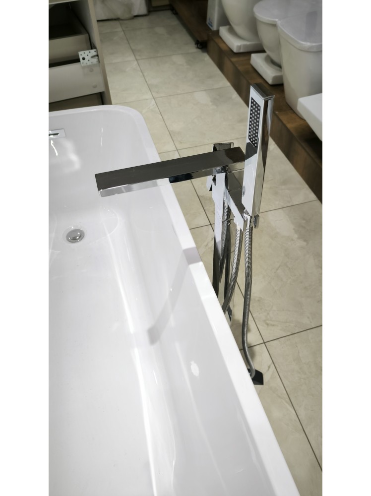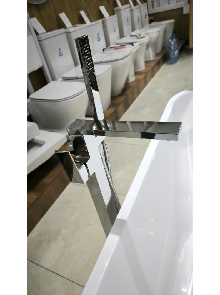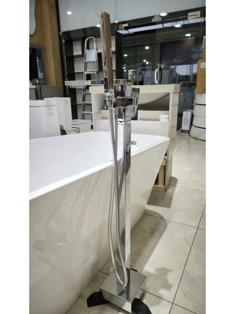 Отдельностоящий смеситель для ванной — стильное и функциональное решение для современных интерьеров. Идеально подходит для установки рядом с отдельно стоящей ванной, создавая эффектный акцент в пространстве и подчеркивая премиальный характер ванной комнаты.
